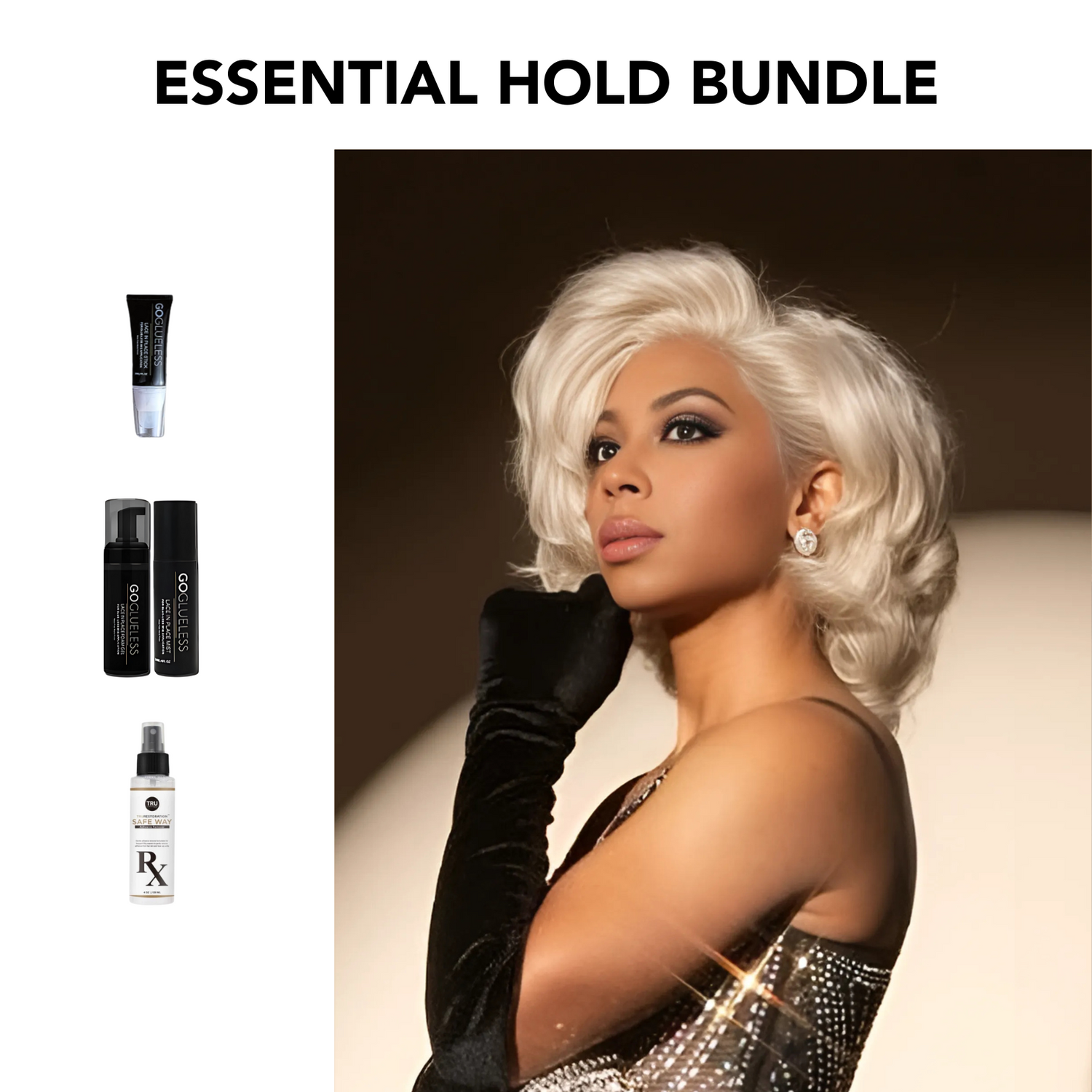 Provide the most secure glueless hold for your clients with a safe and gentle removal process using our GoGlueless stick, Lace In Place foam, Lace In Place mist, and Safe-Way Remover Bundle.