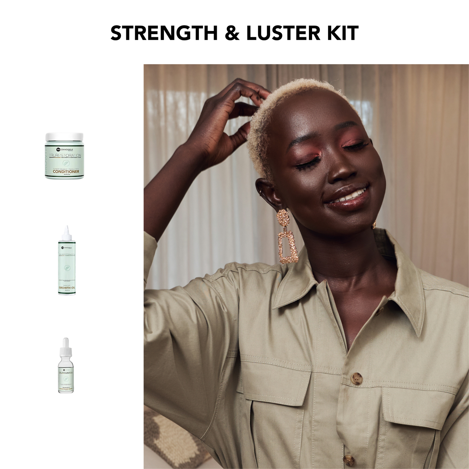 Our Growth Booster Conditioner, Growth Elixir Drops, and Resurrect Growth Oil work together to repair texture, lock in moisture, and bring back your hair’s natural shine and support healthy growth underneath your wigs or weaves.