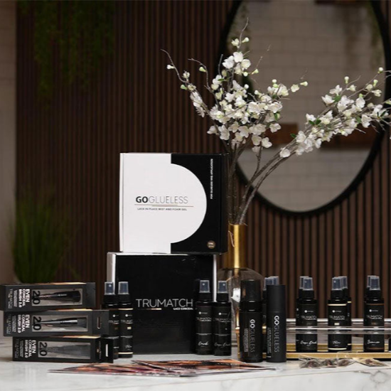 Enjoy your GoGlueless Mist, GoGlueless Foam Gel, GoGlueless Lace in Place Band, TruPrecision Scissors, TruPrecision Tweezers, TruMatch Lace Conceal (color of choice) and Even Conceal Brush!