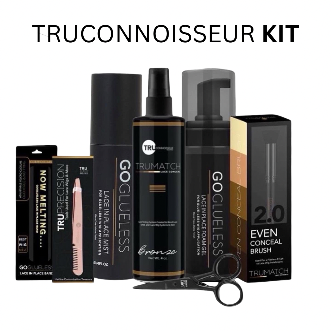 Our TruConnoisseur Kit has everything needed for a Professional Glue-less Wig Slay at home on your own!